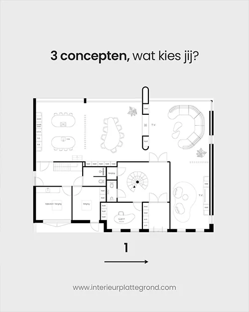 Binnen korte tijd ontvangt u van ons drie volledig uitgewerkte indelingsvoorstellen. Elk ontwerp biedt een unieke benadering van uw ruimte, waarbij rekening is gehouden met lichtinval, looproutes, meubelplaatsing en uw persoonlijke woonstijl. Zo heeft u meerdere perspectieven om uit te kiezen.